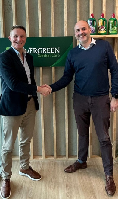 Afgebeeld van links naar rechts: Mark Portman, CEO van Evergreen Garden Care,en Philippe Gysen, Algemeen Directeur.