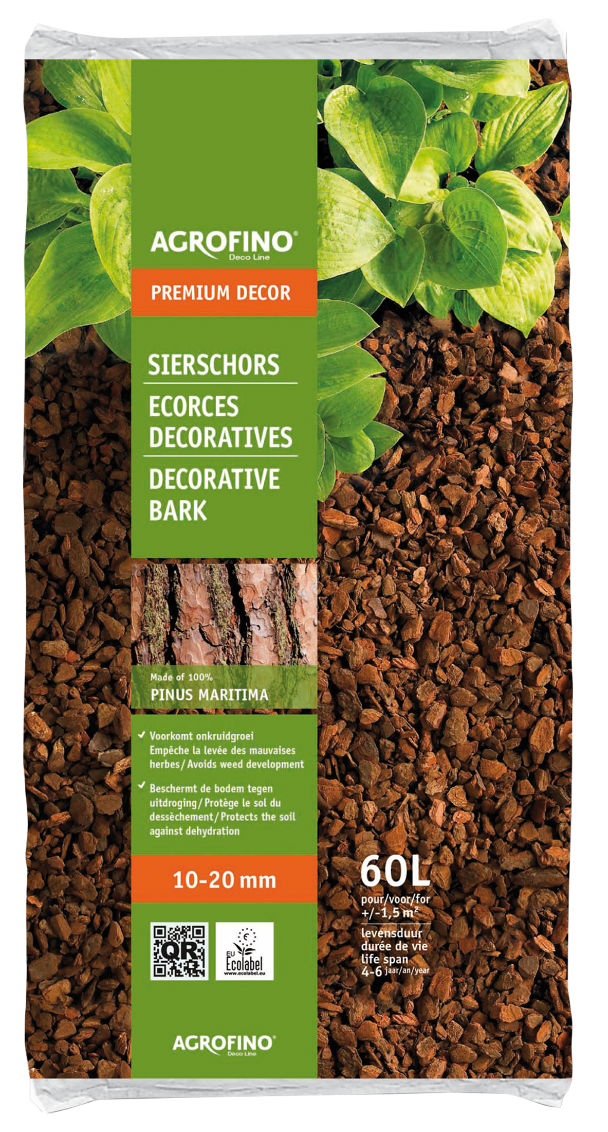Dit is een decoratieve organische bodembedekker gemaakt van Pinus maritima-schors uit Zuidwest-Europa. Het is gezeefd tot 10/20 mm voor uniformiteit, gaat 4-6 jaar mee dankzij de natuurlijke hardheid van de schors en bevat minder dan 10% houtvezel.