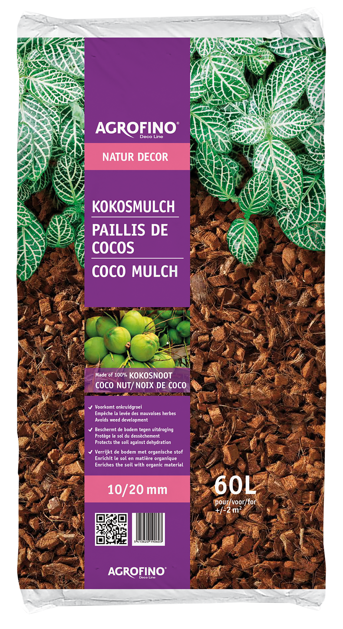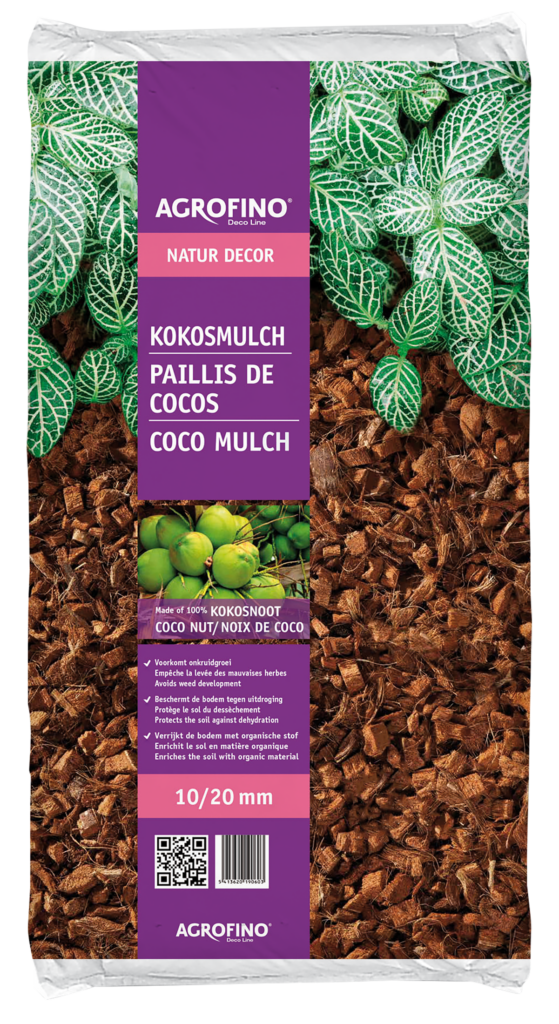 Dit is een milieuvriendelijke bodembedekker. Dit product, afkomstig van de schors van de kokospalm, onderdrukt de groei van onkruid, houdt de bodem vochtig en heeft een zeer natuurlijk en decoratief uiterlijk.