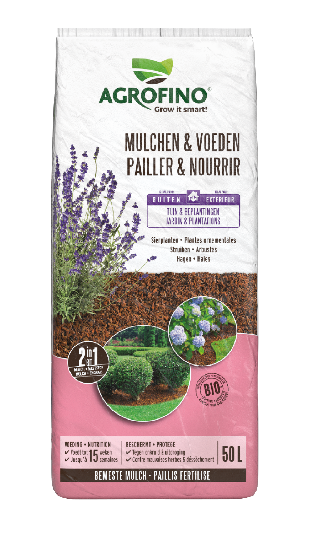 De meststof compenseert onder andere de stikstof die door de mulch wordt opgenomen.