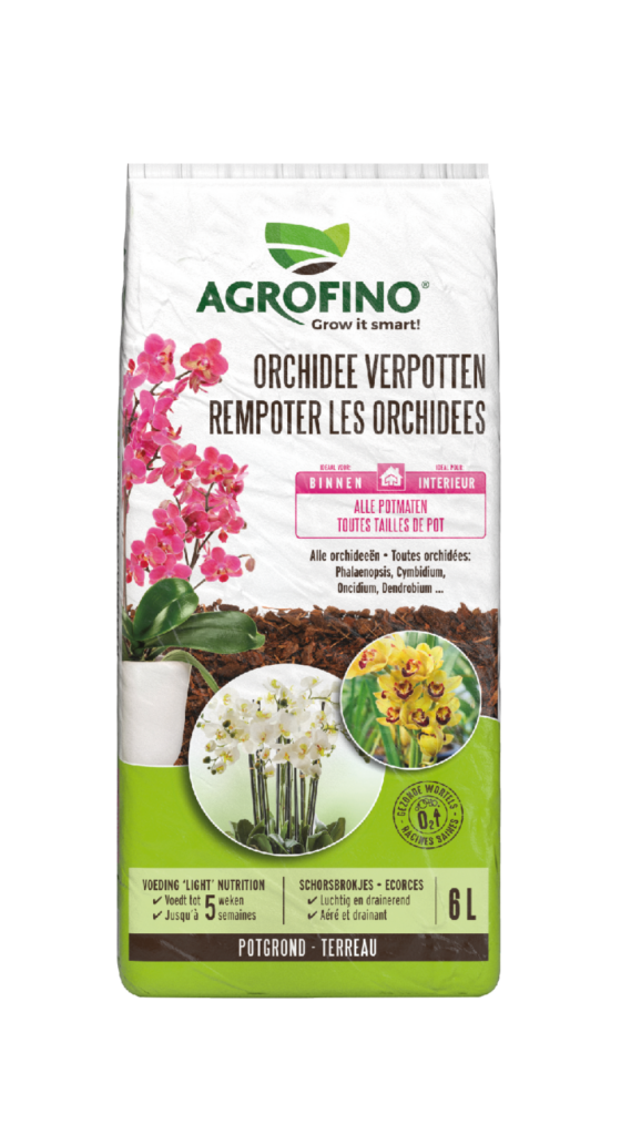 Voor orchideeën kiezen wij een potgrond met een grove structuur en een hoog luchtgehalte. Het is van essentieel belang om voldoende zuurstof rond de wortels te bieden om uw orchidee in optimale conditie te houden.