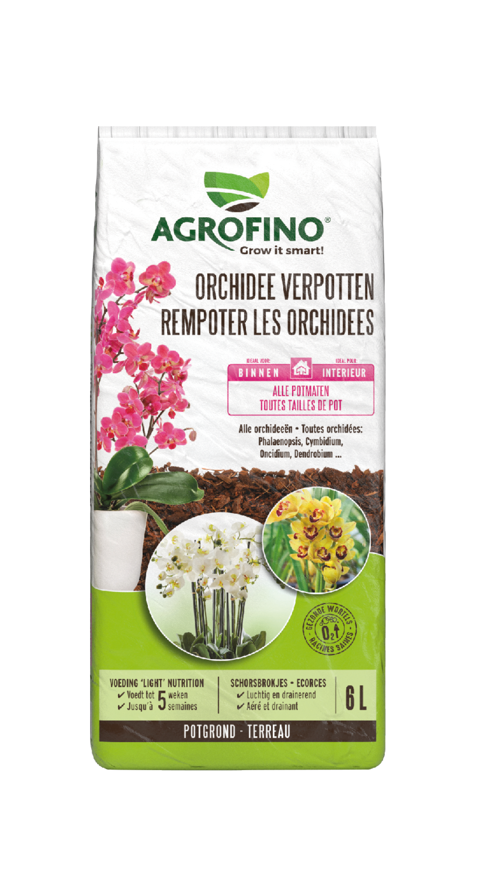 Voor orchideeën kiezen wij een potgrond met een grove structuur en een hoog luchtgehalte. Het is van essentieel belang om voldoende zuurstof rond de wortels te bieden om uw orchidee in optimale conditie te houden.