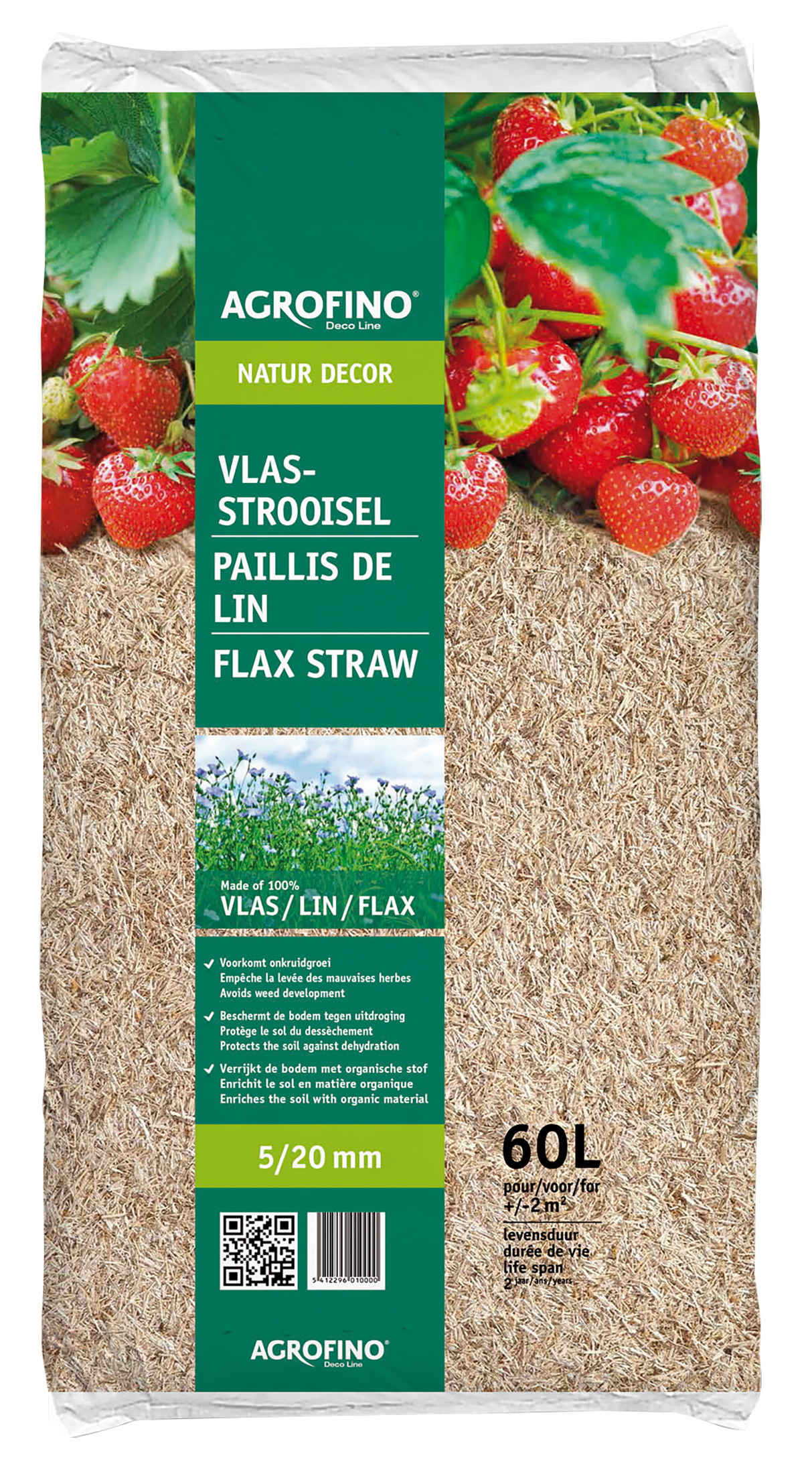 Dit is een decoratieve natuurlijke bodembedekker, vervaardigd uit vlasstengels en afkomstig uit de Europese vlasproductie. Agrofino Vlasstro wordt gezeefd tot 5/20 mm om een product met een uniforme grootte te verkrijgen. De naam Natur Decor verwijst naar het natuurlijke aspect van het product.