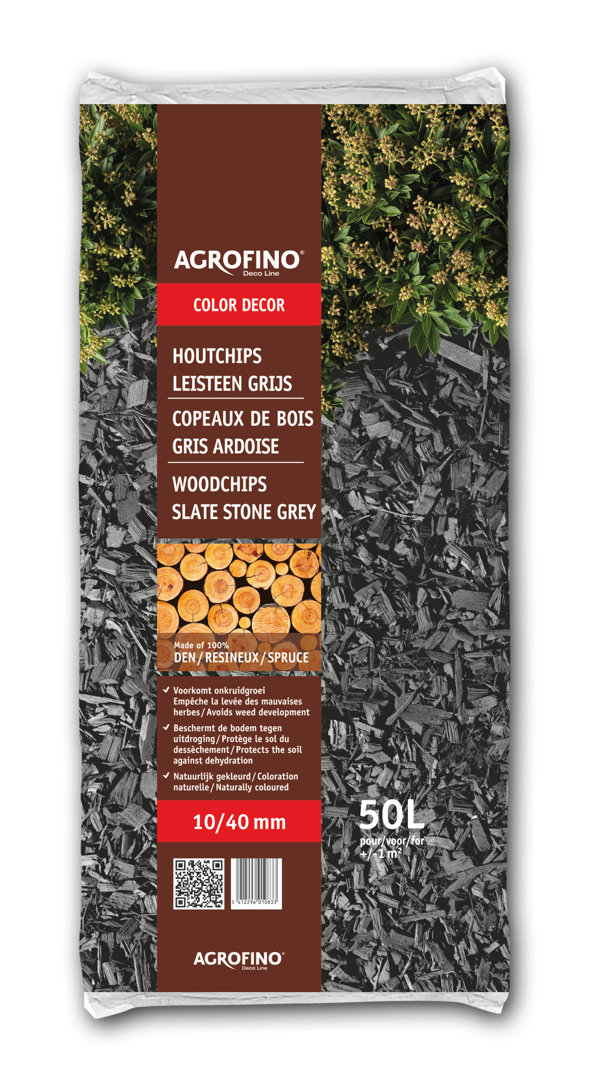 This product is made out of pine wood. These quality woodchips are uniformly sized and are ecologically coloured to ensure a longer lifespan. The chips are sieved to 10/40 mm to obtain a uniformly sized product. The name Color Decor indicates the decorative nanture of the product, allowing you to bring colour into your garden.